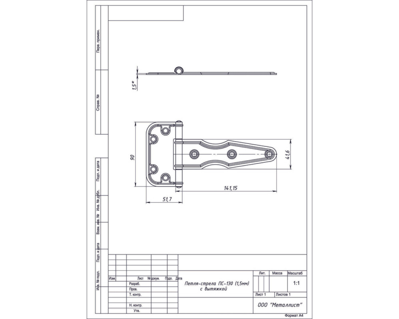 Металист Петля стрела ПС-130 1,5мм пол медь (40) 14620004509083