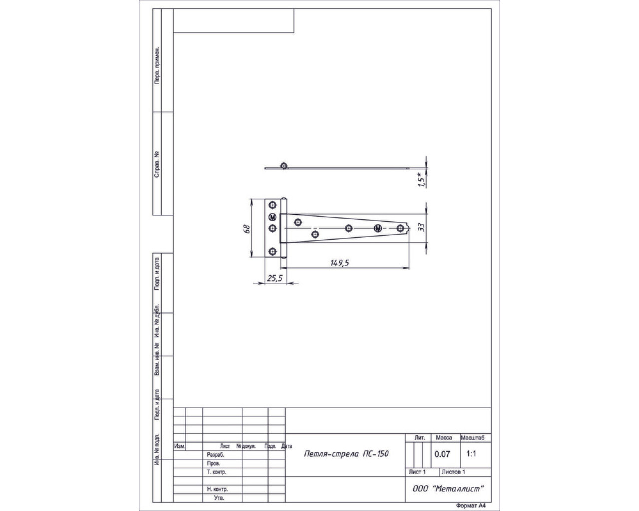 Металист Петля стрела ПС-150 (60) цинк 14620004509656