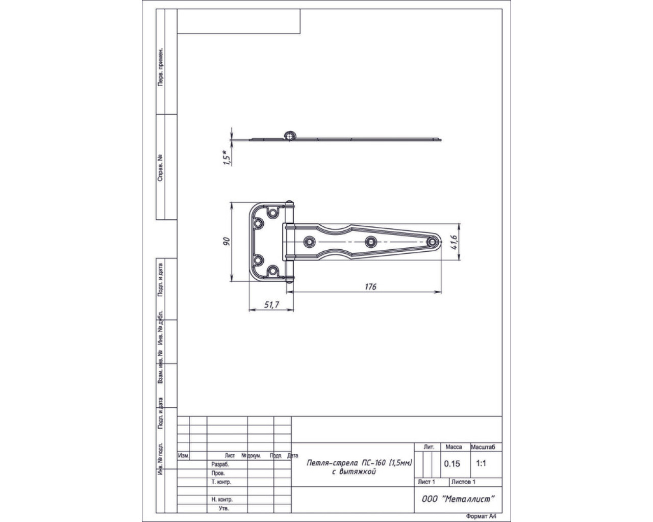 Металист Петля стрела ПС-160 1,5мм пол бронза 14620004509182