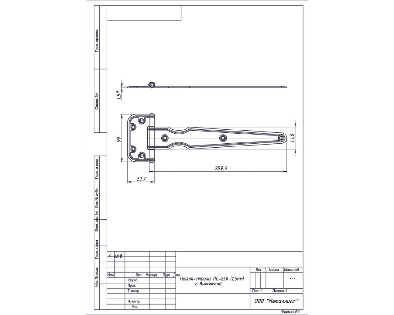 Металист Петля стрела ПС-250 1,5мм б/п (40) 14620004509274