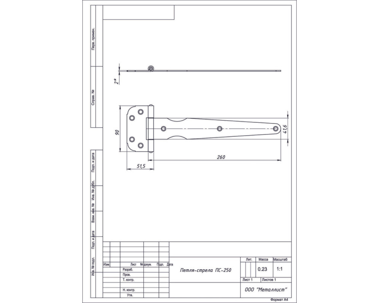 Металист Петля стрела ПС-250 цинк (40) 14620004502749