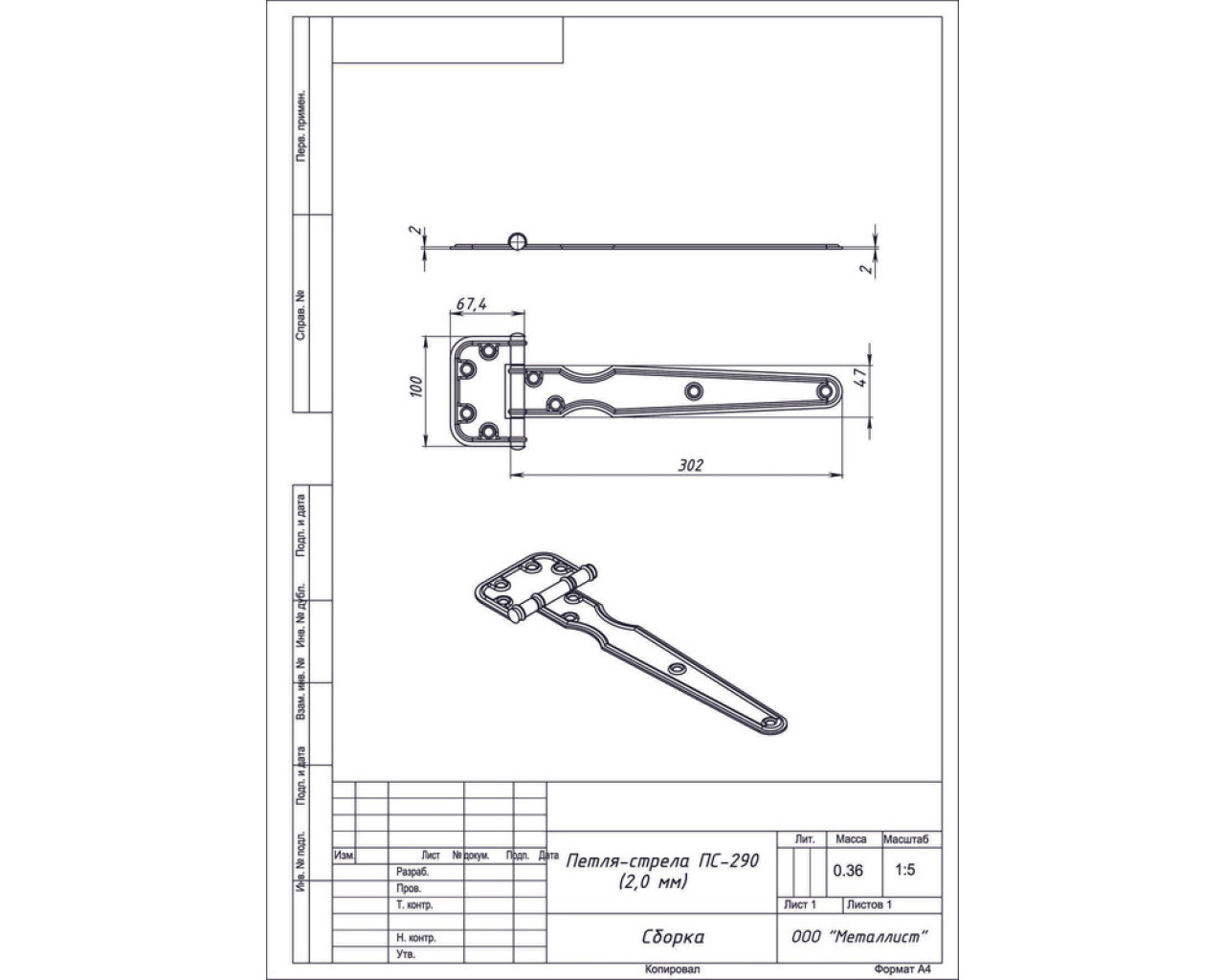Металист Петля стрела ПС-290 2,0мм цинк (30) 14620004507539