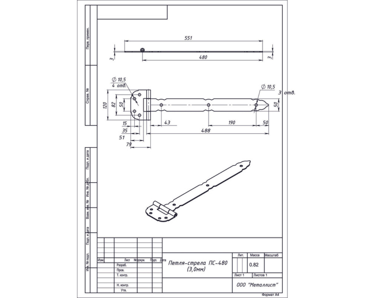 Металист Петля стрела ПС-480 3,0мм б/п (10) 14680039977707