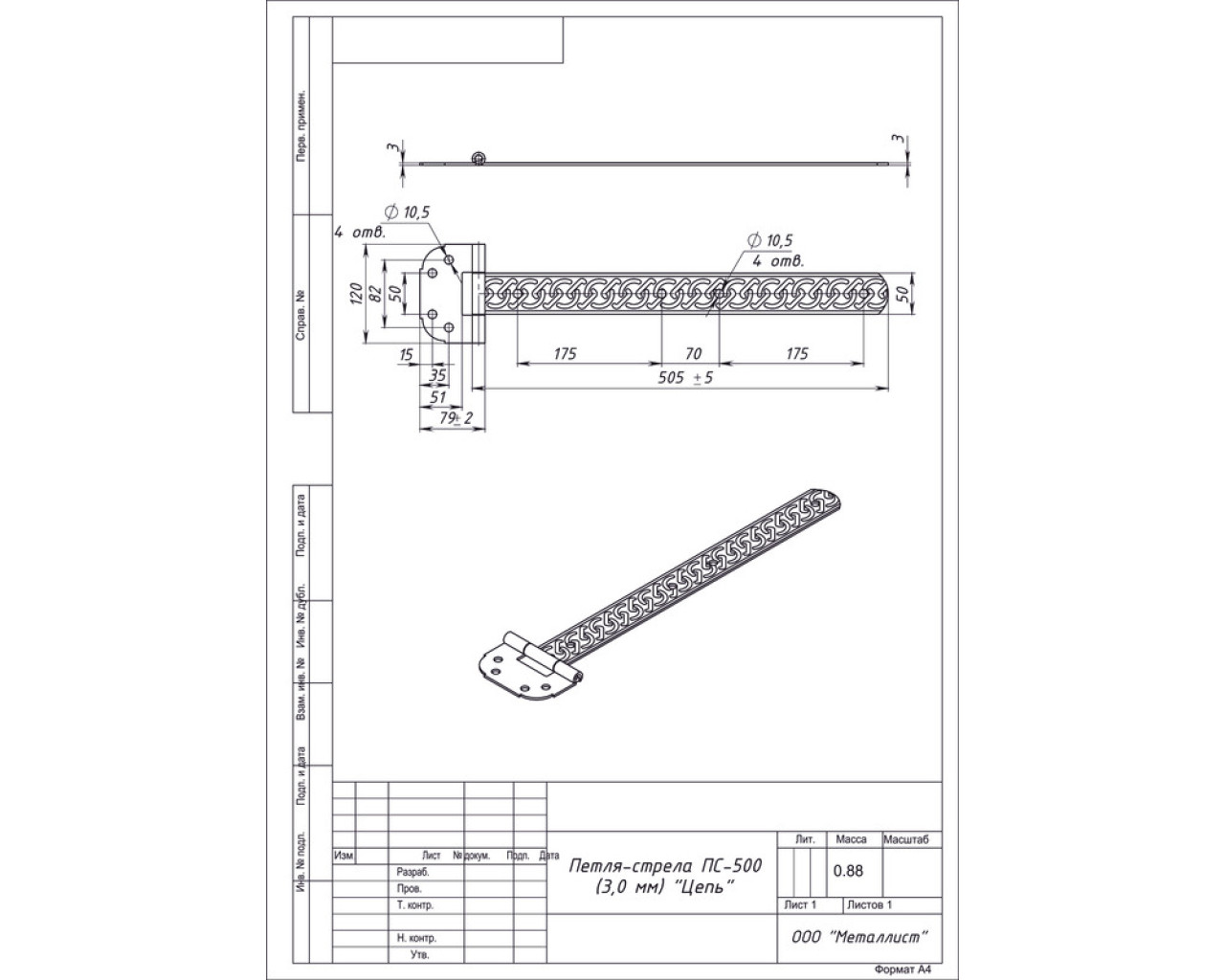 Металист Петля стрела ПС-500 3,0мм цепь пол серебро (10) 14680039979558