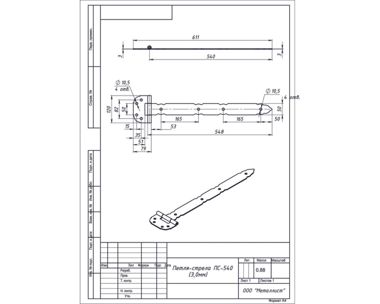 Металист Петля стрела ПС-540 3,0мм б/п (10) 14680039977745