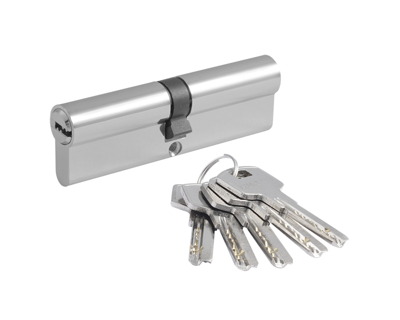 Цилиндр для межкомнатных и входных дверей Материал ЦАМ сплав цинка алюминия и меди В комплекте 5 стальных перфорированных ключей 5-6 пинов в зависимости от размера Длину цилиндра подбирайте исходя из толщины двери с небольшим запасом под накладку
