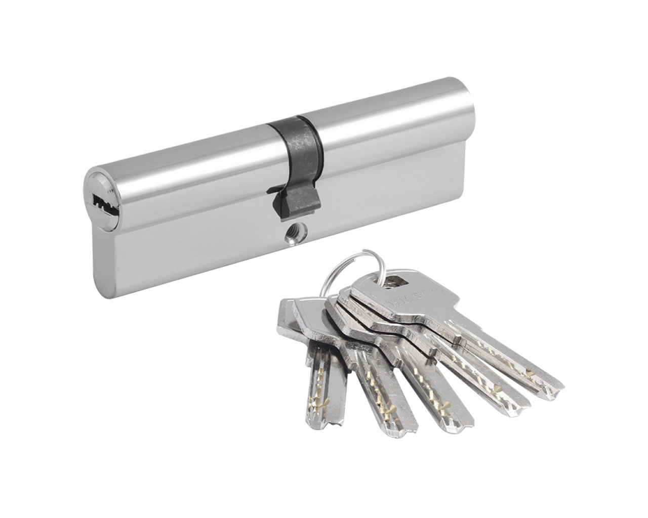 Цилиндр для межкомнатных и входных дверей Материал ЦАМ сплав цинка алюминия и меди В комплекте 5 стальных перфорированных ключей 5-6 пинов в зависимости от размера Длину цилиндра подбирайте исходя из толщины двери с небольшим запасом под накладку