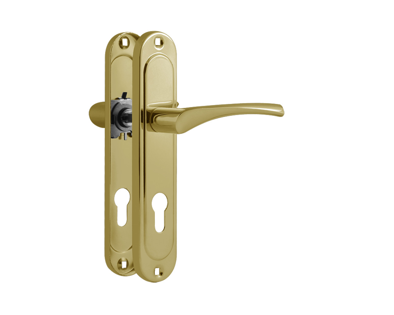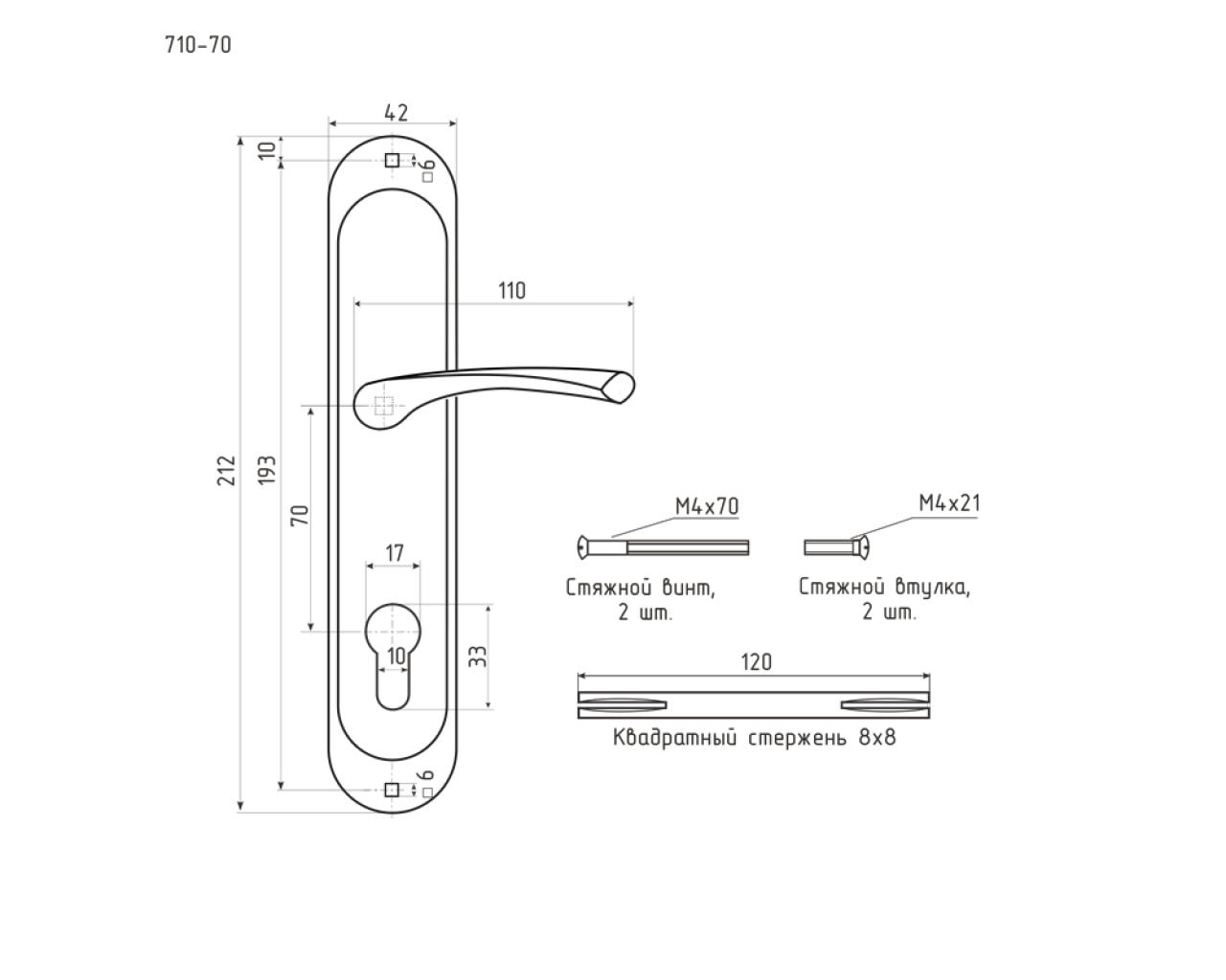 Комплект ручек на планке 2 шт модели 710-70 предназначен для комплектации с корпусом замка под цилиндр с межосевым расстоянием 70мм В упаковке 2 ручки на планке крепежРучки универсальные могут быть установлены на двери левого и правого открыванияМатериал ручки - сплав алюминия алюминий и кремний материал планки - сталь Механизм - усиленная пружина с повышенным ресурсом работы из закаленной сталиПокрытие ручки и планки - многослойное гальваническое