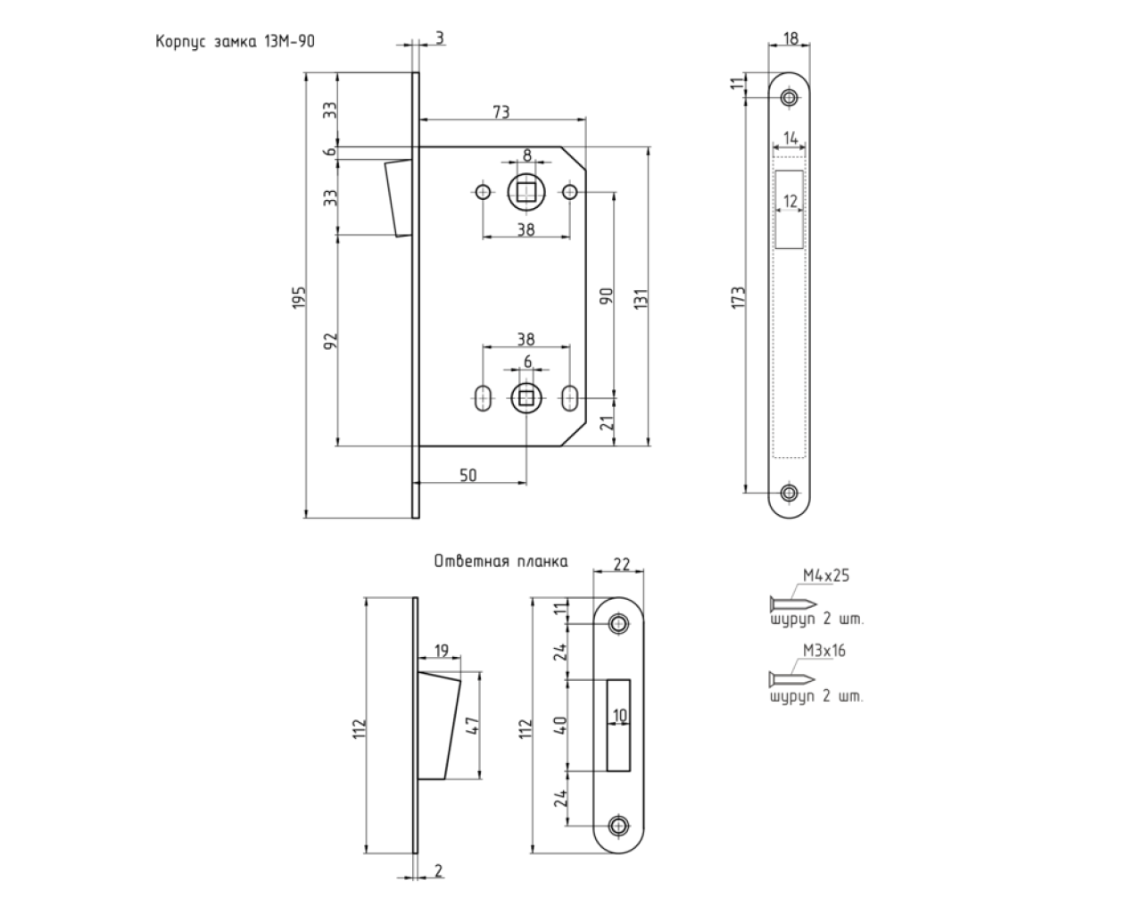 Нора М Корпус замка магн под фикс 13М-90мм хром 4606555066933