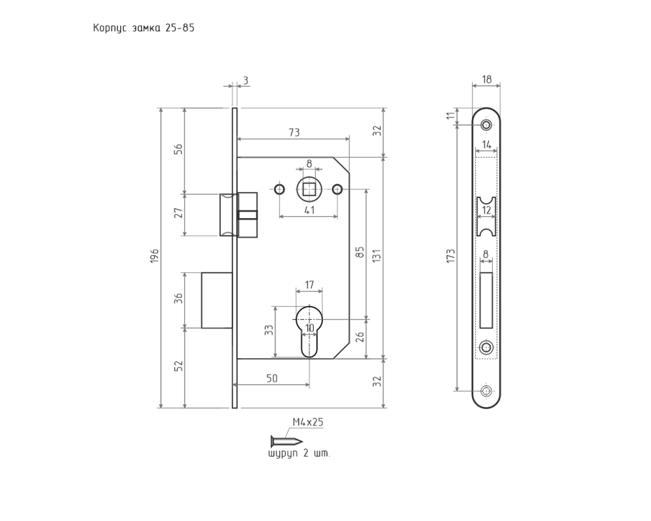 Корпус замка предназначен для деревянных межкомнатных дверей Бэксет 50 мм межосевое расстояние 85 мм Запирается при помощи цилиндра в комплекте не идет приобретается отдельно Гальваническое покрытие лицевых деталей Обратите внимание что ответной планки в комплекте нет приобретается отдельно Крепеж в комплекте Упаковка - картонная коробка
