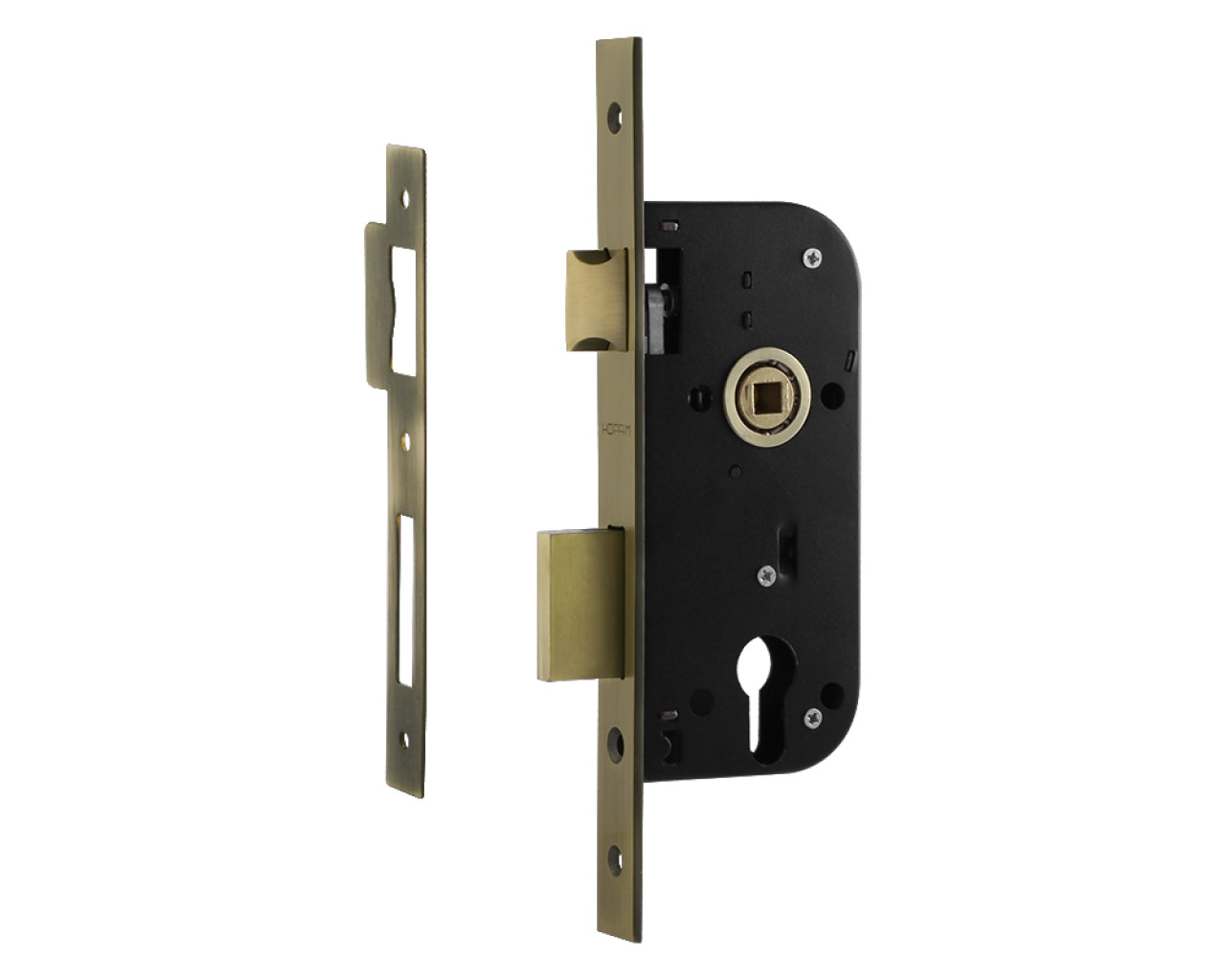 Корпус дверного замка предназначен для установки на деревянные входные и межкомнатные двери для комплектации с цилиндровым механизмом и ручкой Корпус изготовлен из стали имеет порошковое покрытие защищающее от коррозии Запорные элементы собачка и один прямоугольный ригель с нижним расположением Межосевое расстояние 70 мм Модель имеет универсальную конструкцию и подходит для установки на левые и правые двериЛицевая и ответная планки имеют гальваническое покрытие которое защищает металл от коррозии и механических повреждений Цвета планок хром матовый никель полированная латунь старая бронза