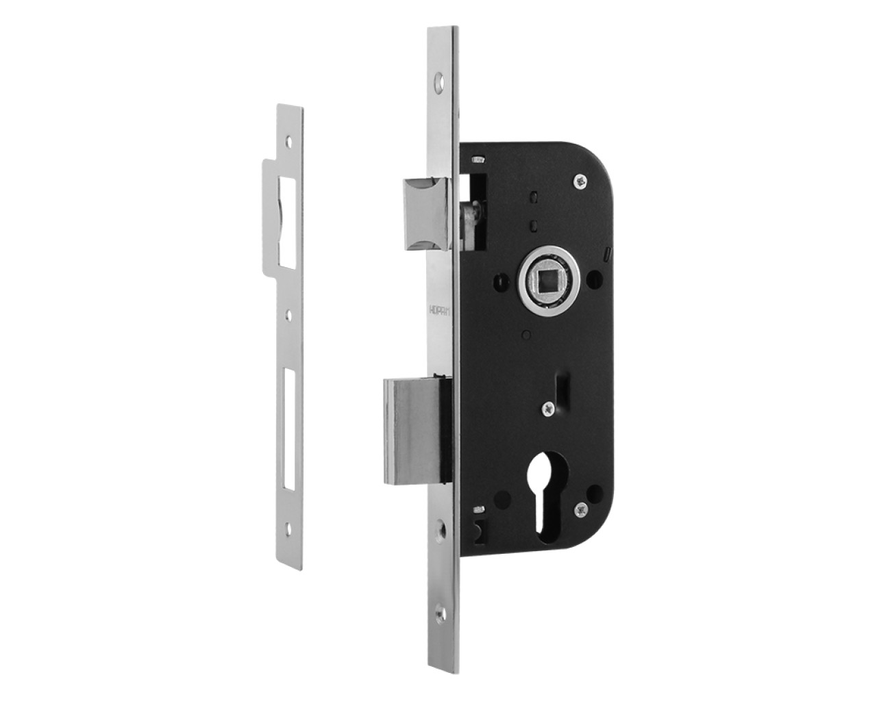 Корпус дверного замка предназначен для установки на деревянные входные и межкомнатные двери для комплектации с цилиндровым механизмом и ручкой Корпус изготовлен из стали имеет порошковое покрытие защищающее от коррозии Запорные элементы собачка и один прямоугольный ригель с нижним расположением Межосевое расстояние 70 мм Модель имеет универсальную конструкцию и подходит для установки на левые и правые двериЛицевая и ответная планки имеют гальваническое покрытие которое защищает металл от коррозии и механических повреждений Цвета планок хром матовый никель полированная латунь старая бронза