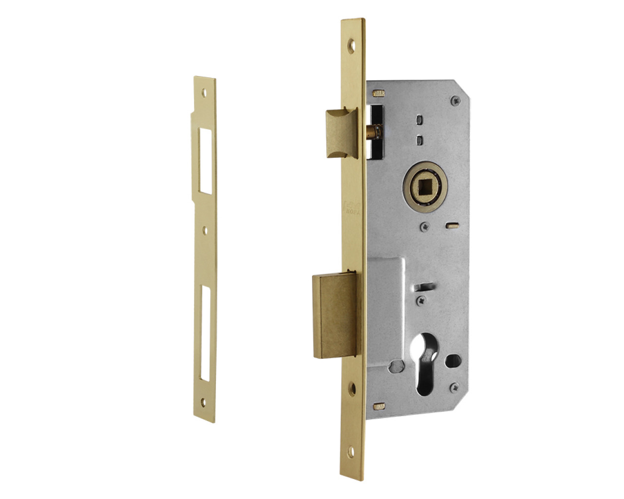 Корпус замка врезной модели 102 40мм предназначен для установки в деревянные входные двери Запирается при помощи цилиндра приобретается отдельно Межосевое расстояние 85 мм Бэксет 40 мм Отверстие под квадрат ручки 88 мм Может быть скомплектован как с дверными ручками на розетке так и с ручками на планке ручки приобретаются отдельно Корпус выполнен из стали механизм из закаленной стали Корпус имеет антикоррозийное покрытие лицевая и ответные планки покрыты гальваническим способом Крепеж в комплекте