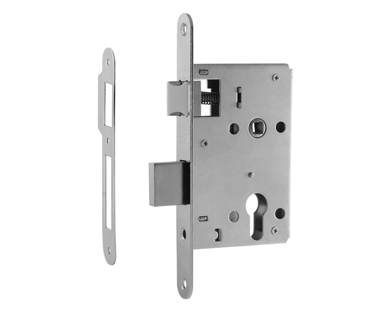 Корпус дверного замка предназначен для установки на деревянные входные и межкомнатные двери для комплектации с цилиндровым механизмом и ручкой Корпус изготовлен из стали имеет порошковое покрытие защищающее от коррозии Запорные элементы собачка и один прямоугольный ригель Межосевое расстояние 55 мм Модель имеет универсальную конструкцию и подходит для установки на левые и правые двериЛицевая и ответная планки имеют гальваническое покрытие которое защищает металл от коррозии и механических повреждений Цвета планок полированная латунь хром Гарантия производителя на работу