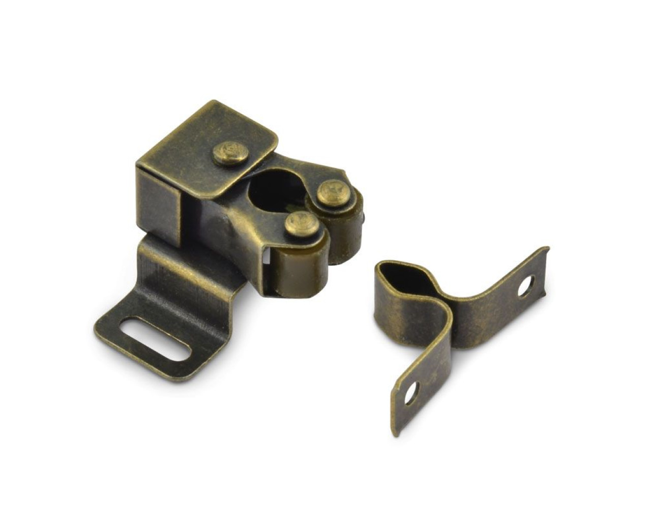 Роликовая защелка 1 используется для установки на мебельные дверцы Этот вид фурнитуры является надежным устройством для выполнения функции фиксации мебельных створок в закрытом положенииСостоит из двух частей - корпуса с гнездами для крепления и роликовым механизмом и ответной части Ответная часть сконструирована таким образом что ее выступающая часть при применении некоторого усилия располагается между раздвигающимися роликами которые фиксируют ее Для открытия дверцы зафиксированной роликовой защелкой нужно также применить небольшое усилие потянув ееПростой и надежный механизм роликовой защелки 1 выполнен из стали ролики - пластиковые Корпус защелки покрыт гальваническим способом