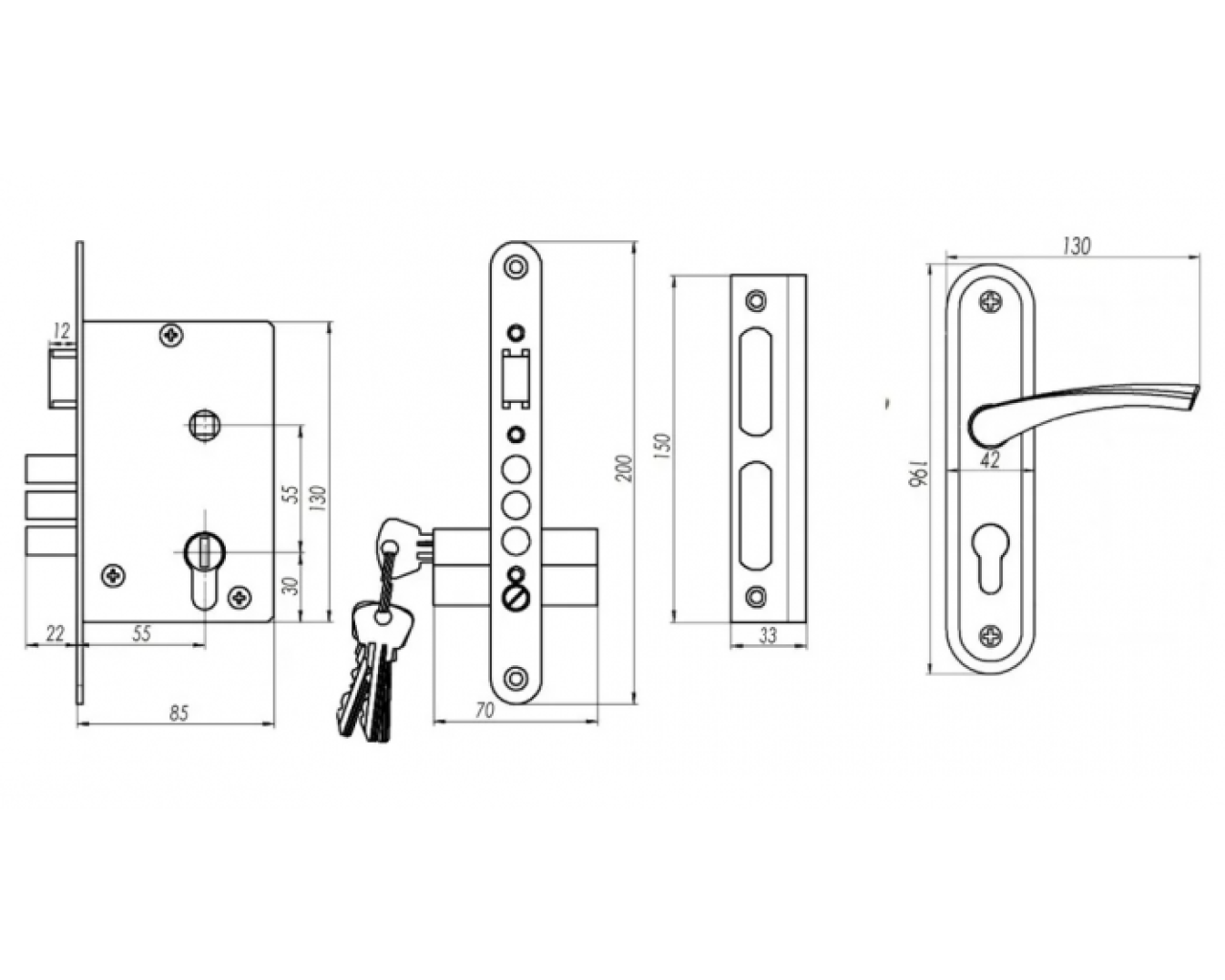 Бюджетный комплект Рекомендован для установки в деревянные двери толщиной 35-45 мм Крепление ручек осуществляется стяжками Готовый комплект для установки