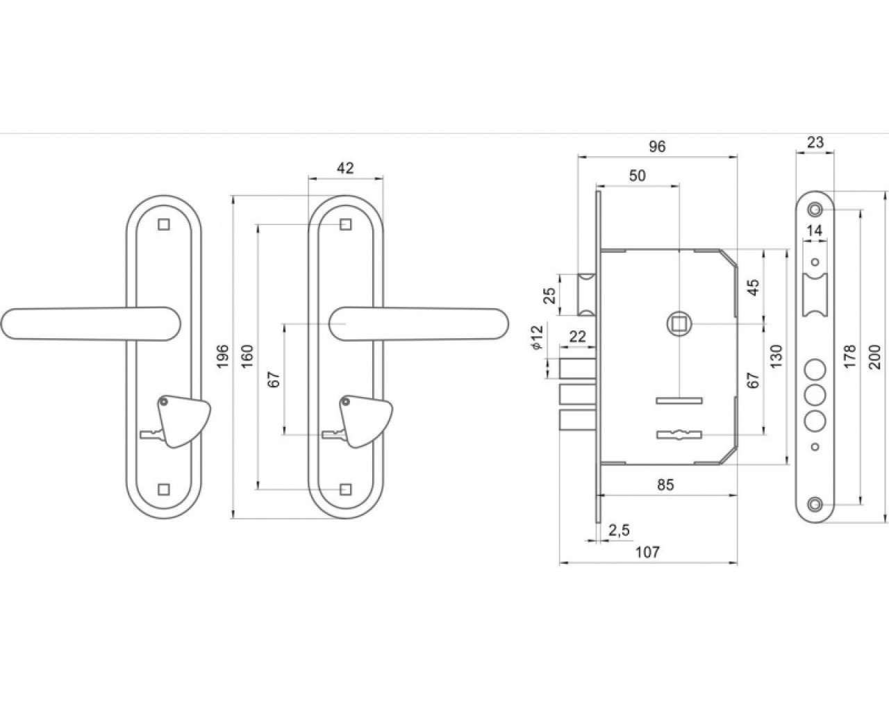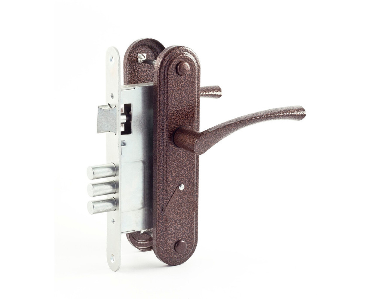 стальной оцинкованный корпус -3 стальных цилиндрических ригелей диаметром 12мм -межосевое расстояние 67 мм -удаление клчевого отверстия 55 мм -универсальная защелка -подпружиненные ручки Комплектуется 3 ключами запорной планкой и комплектом для крепежа Ключ материал-ЦАМ
