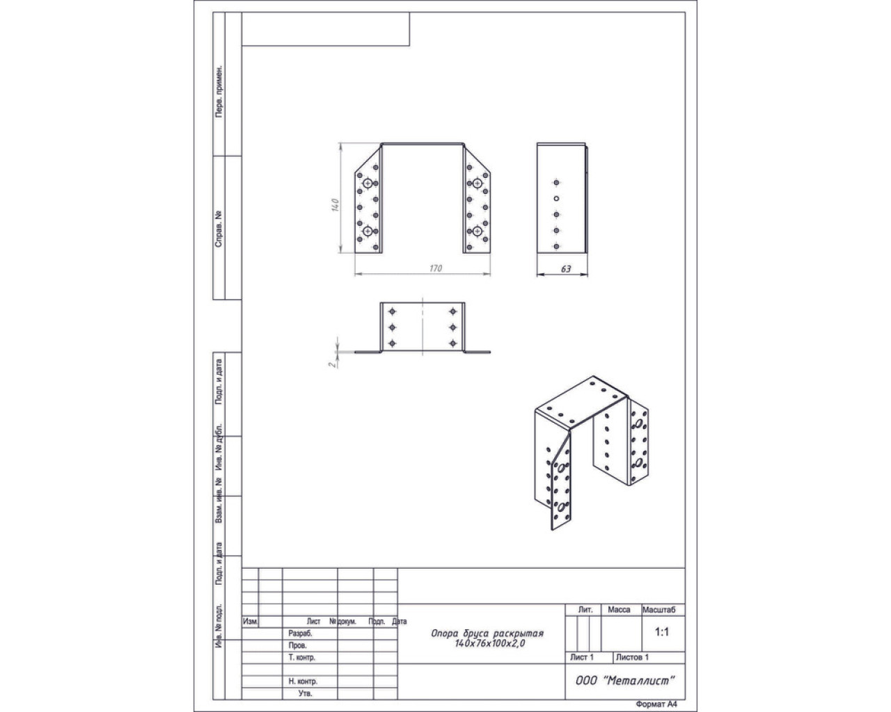 Опора бруса 140*76*100*20 раскрытая ГОЦ (12) 14660214390439