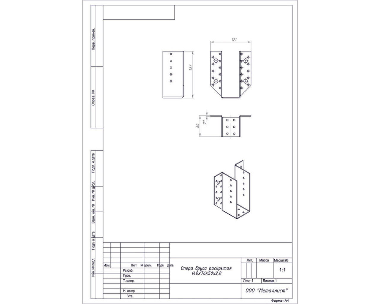 Опора бруса 140*76*50*2.0 раскрытая ГОЦ (16) 14660214390446
