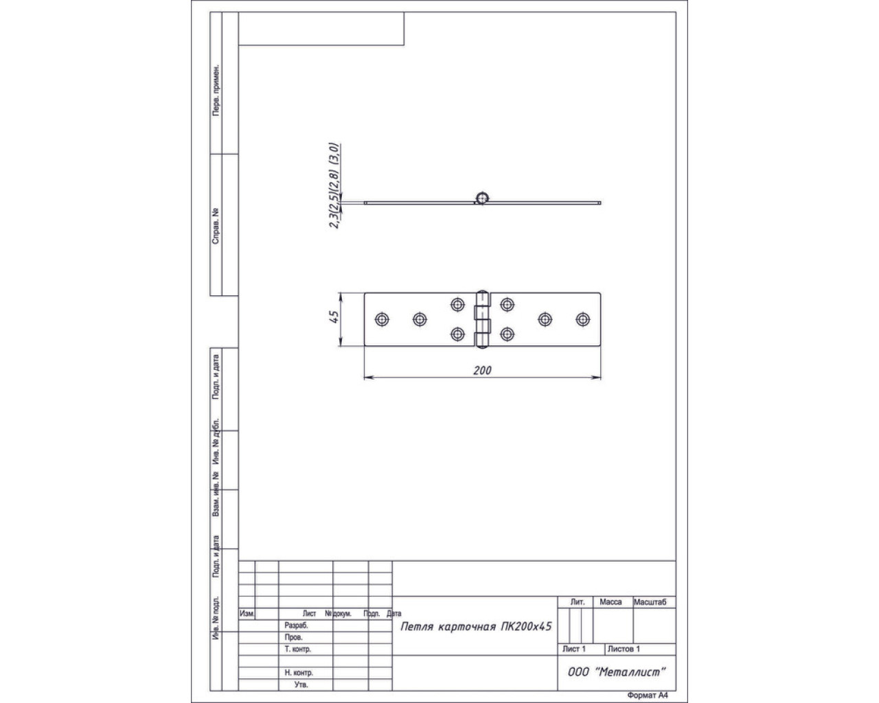 Петля карточная 200*45 2,3мм цинк 14620004503203