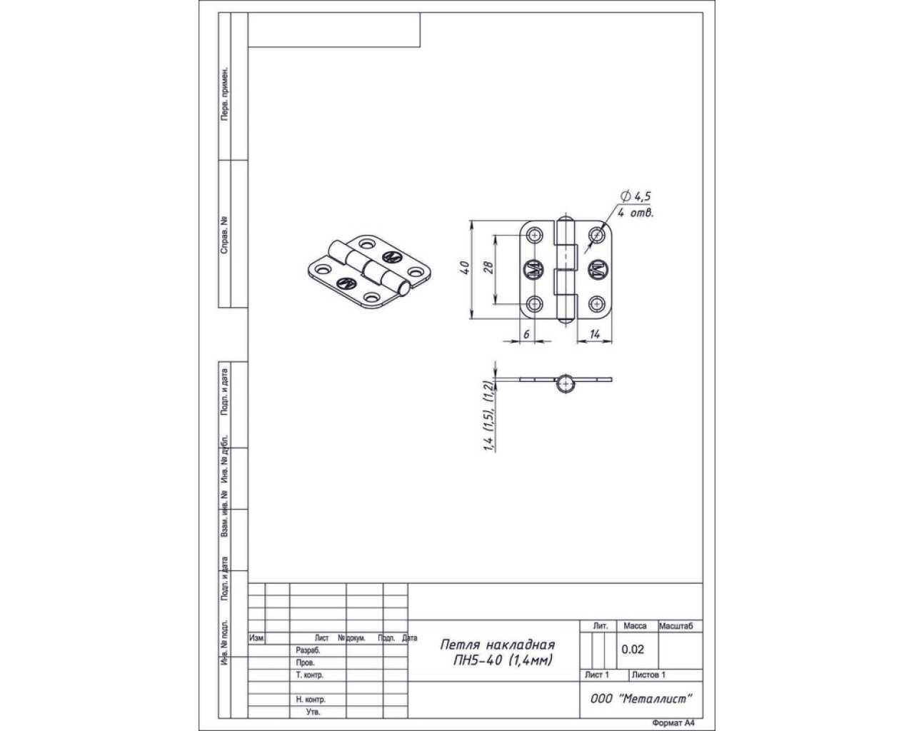 Петля нак ПН5-40 1,4мм цинк 14680039975864