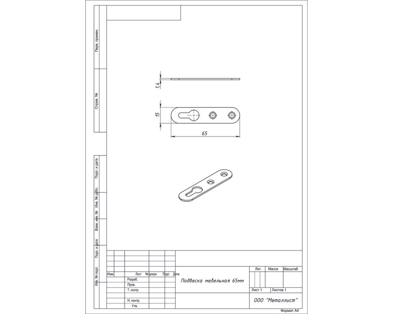Подвеска мебельная 51а L-65 цинк 14620004501513