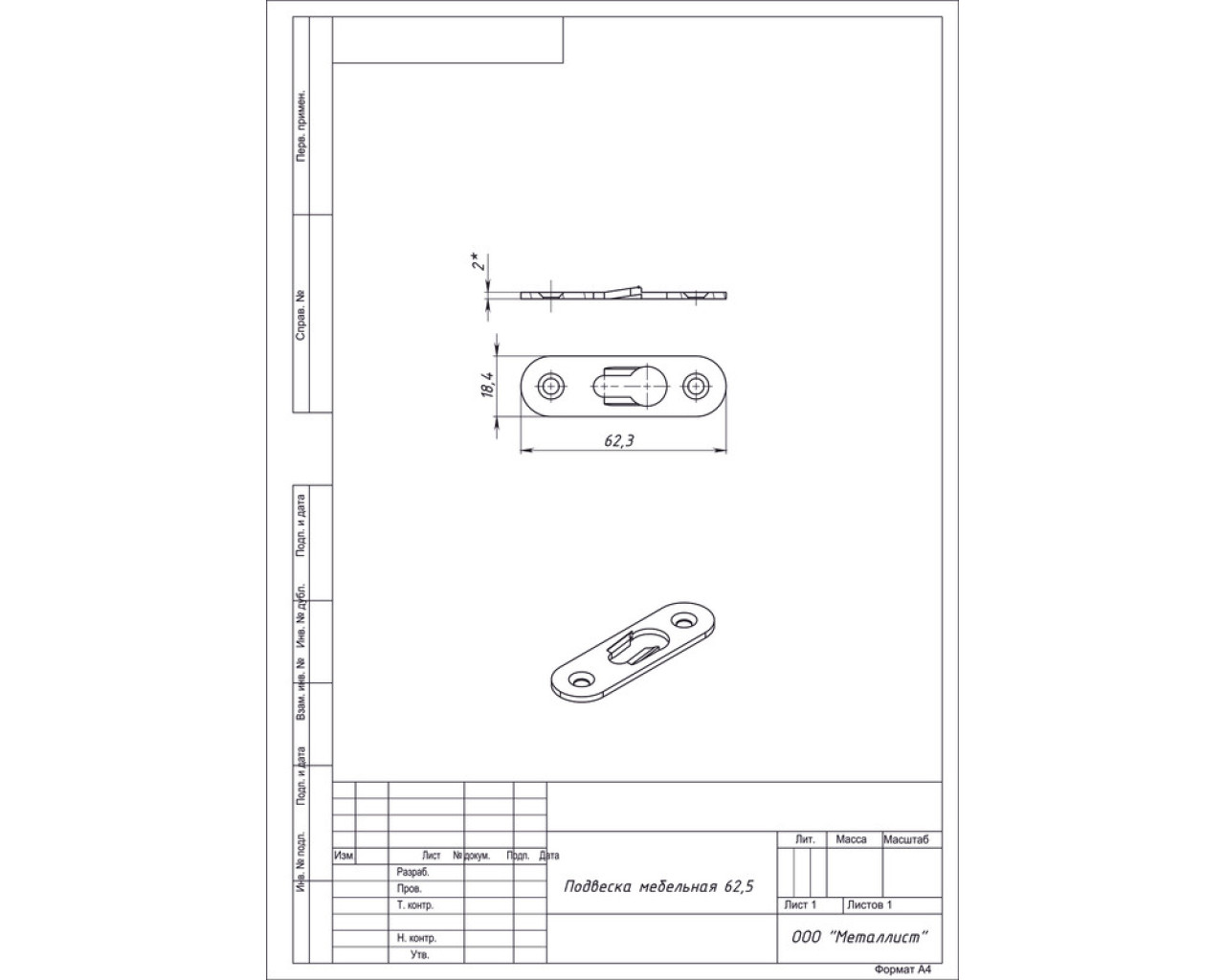 Подвеска мебельная 62.5 мм цинк 14620004508086
