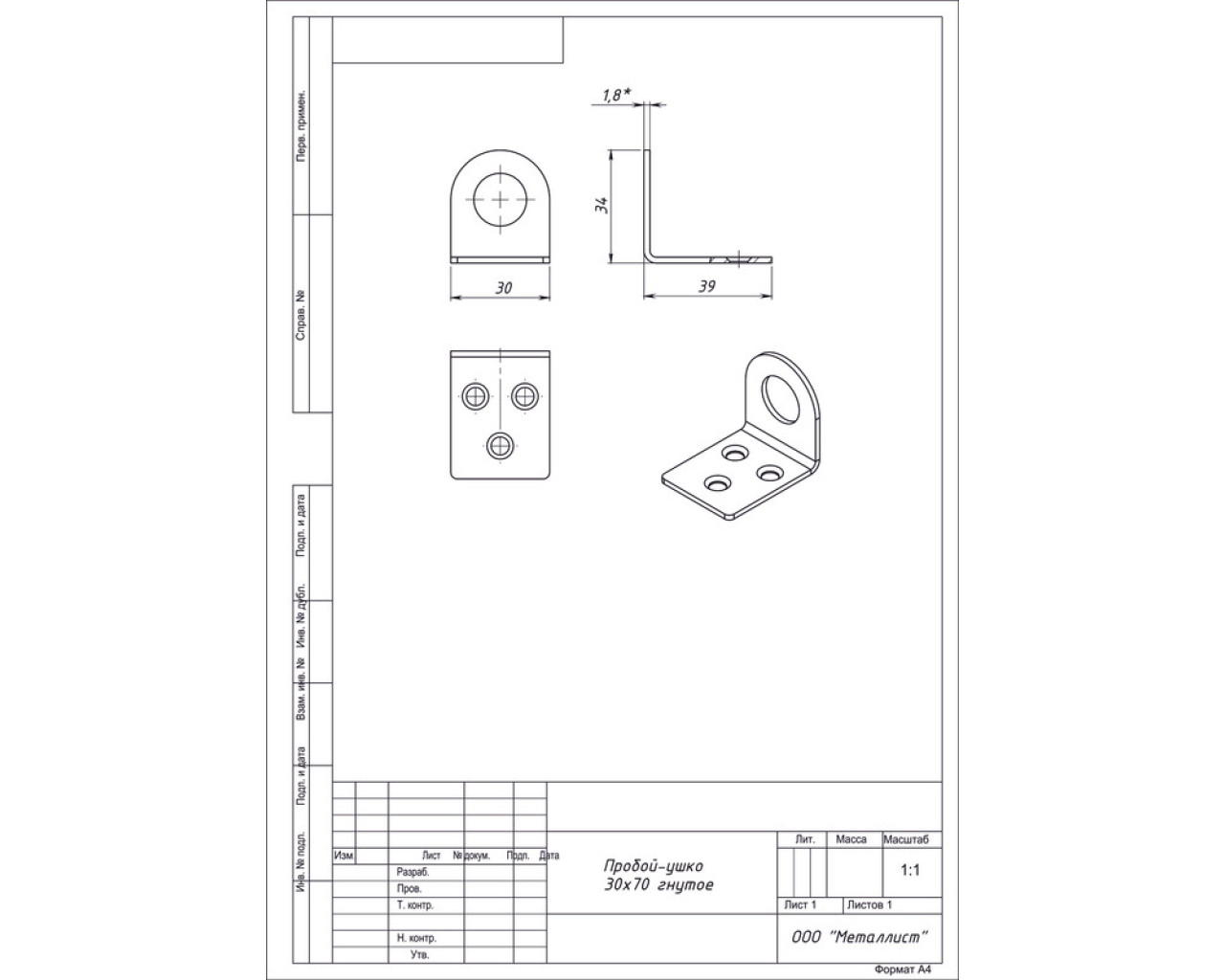 Пробой ушко гнутое 30*70 цинк 14620004504767
