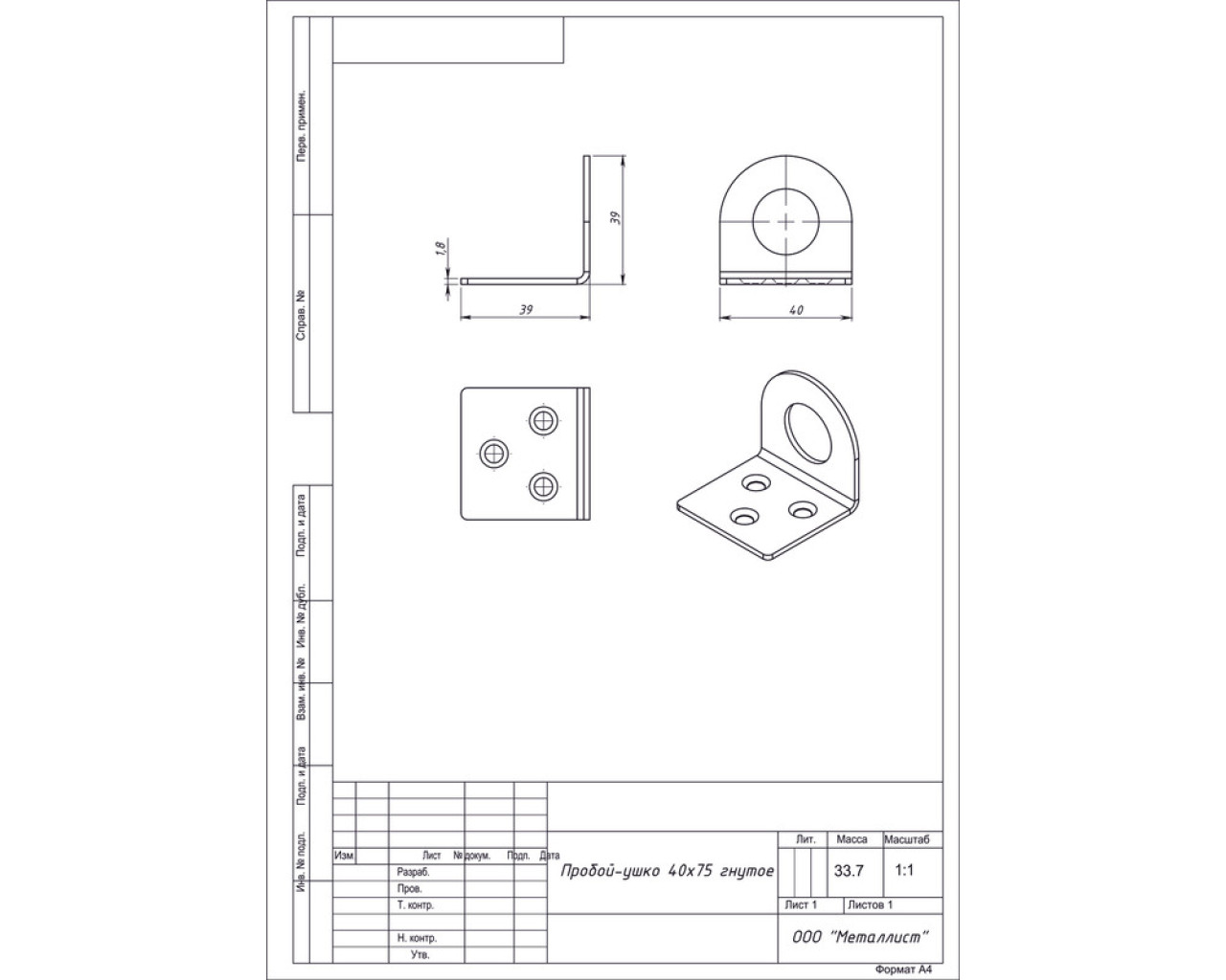 Пробой ушко гнутое 40*75 цинк 14620004501704