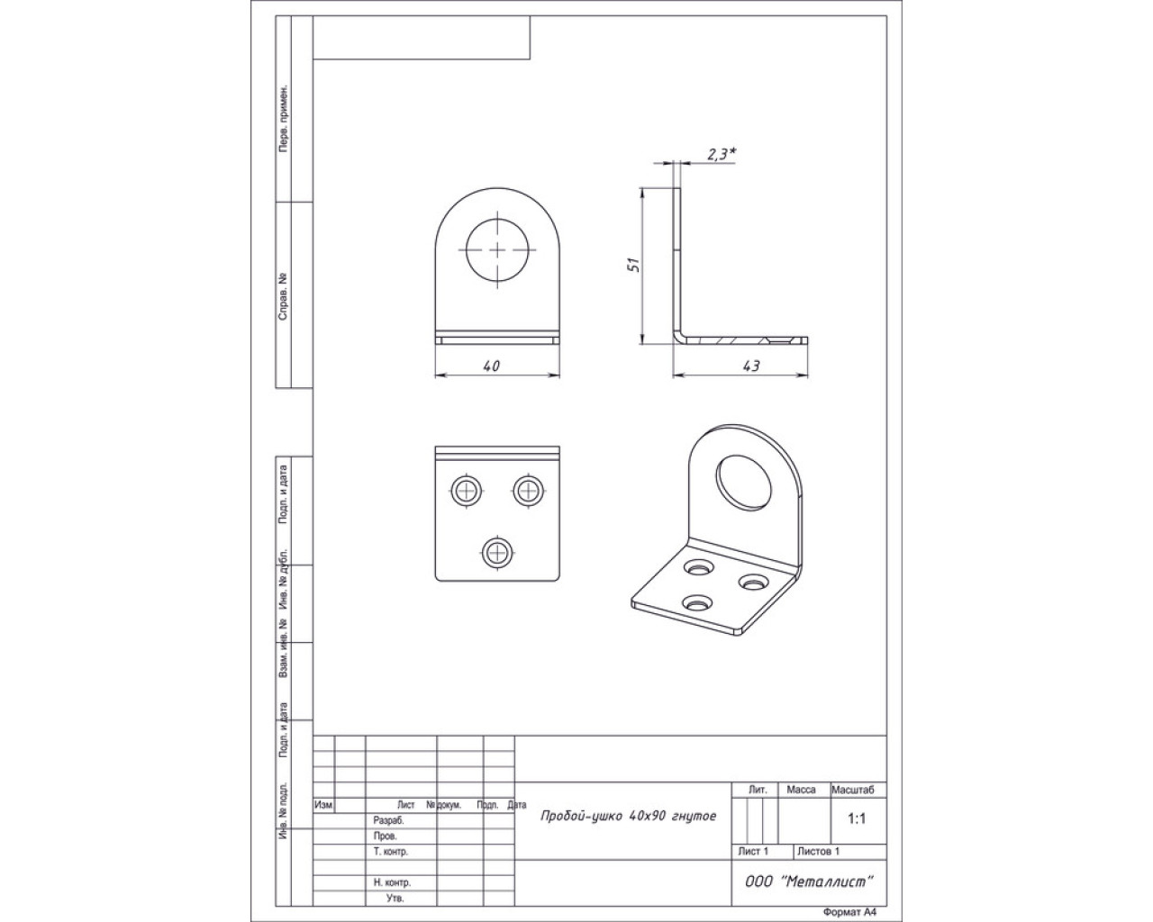 Пробой ушко гнутое 40*90 цинк 14620004504781