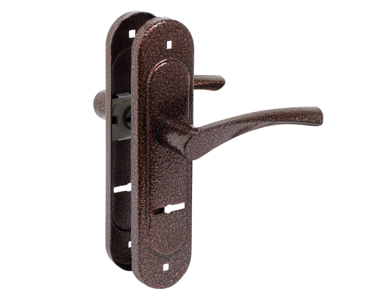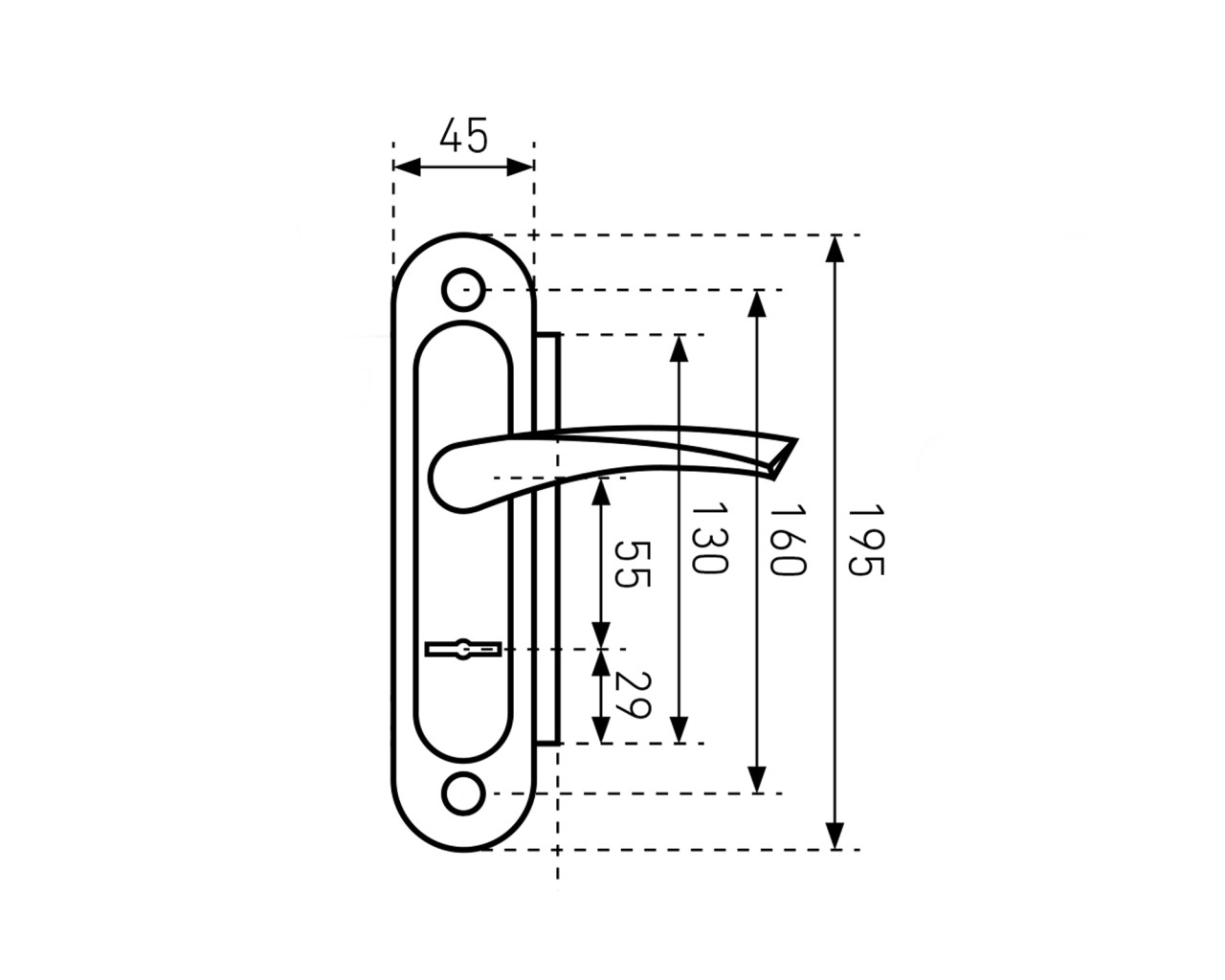 Ручка на планке для сувальдного замка с межосевым расстоянием 55мм. Материал ручки - алюминий, планки - сталь. Крепление - стяжки.