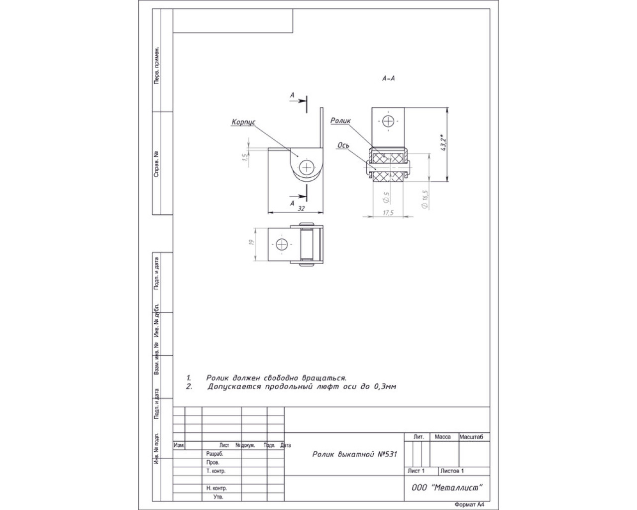 Ролик выкатной 531 цинк 14620004505092