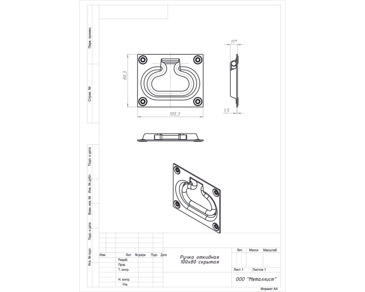 Ручка откидная 10080 скрытая цинк 50 146800399738853