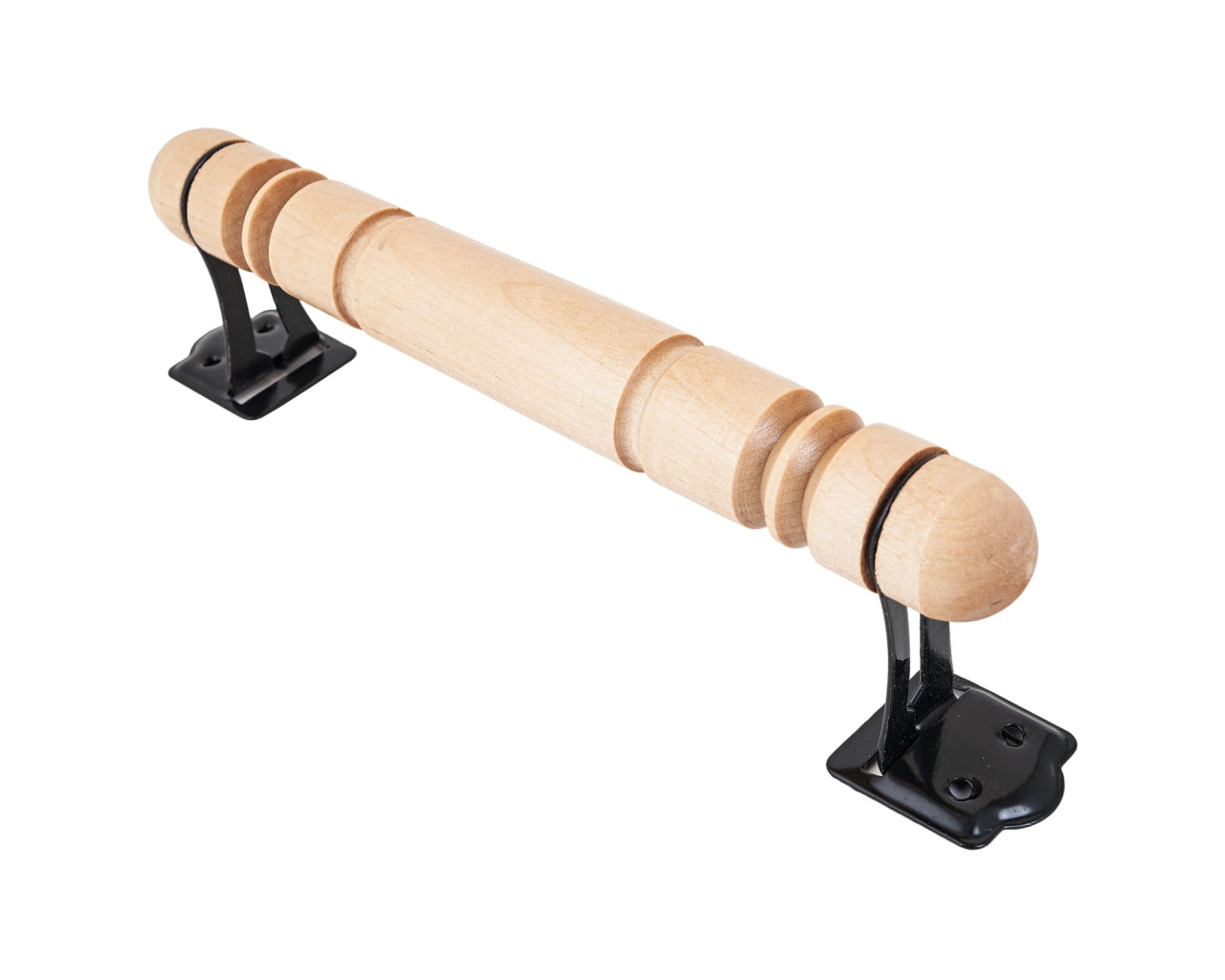 Ручка-скоба для деревянных окон и дверей. Ручка круглая точеная. Материал ручки - лакированное дерево, материал креплений - сталь с полимерным покрытием. Расстояние между креплениями - 240 мм, длина ручки - 240 мм, диаметр - 26 мм. Крепеж в комплект не входит.