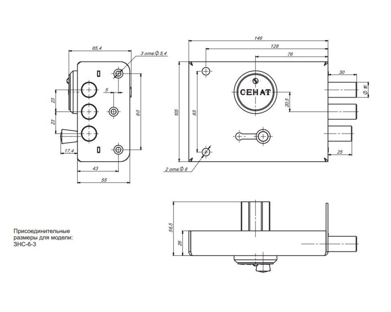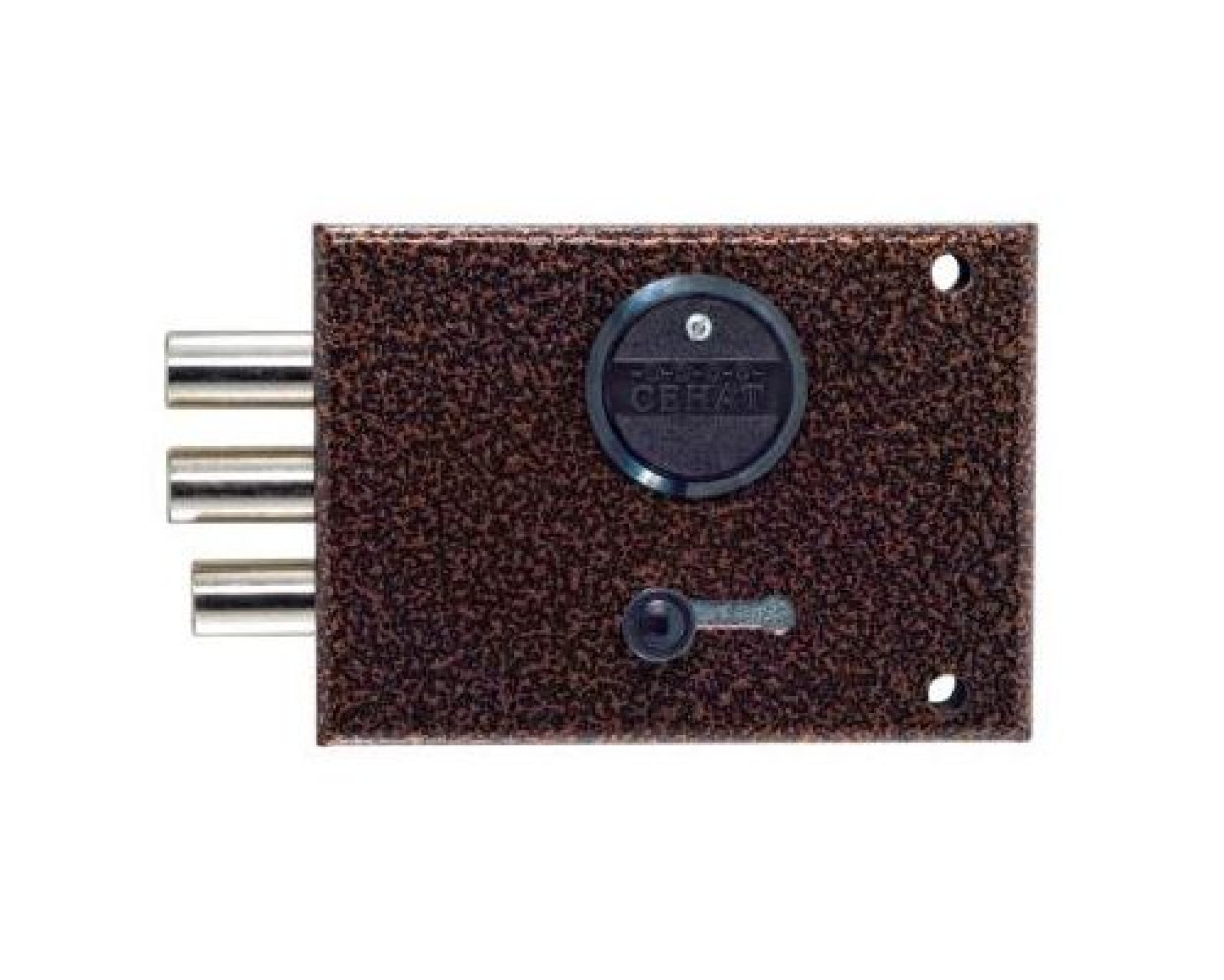 Замок накладной сувальдный с задвижкой. Предназначен для установки на металлические двери. Засов из трех цилиндрических ригелей диаметром 16 мм, с максимальным вылетом 30 мм. Удаление ключевого отверстия - 76 мм. Количество полуоборотов ключа - 4. Габариты замка - 146х105х26 мм. С внутренней стороны замок может закрываться на задвижку. Защита от вскрытия замка отмычкой, защита от высверливания стойки ригеля и защита от вскрытия методом проворота.