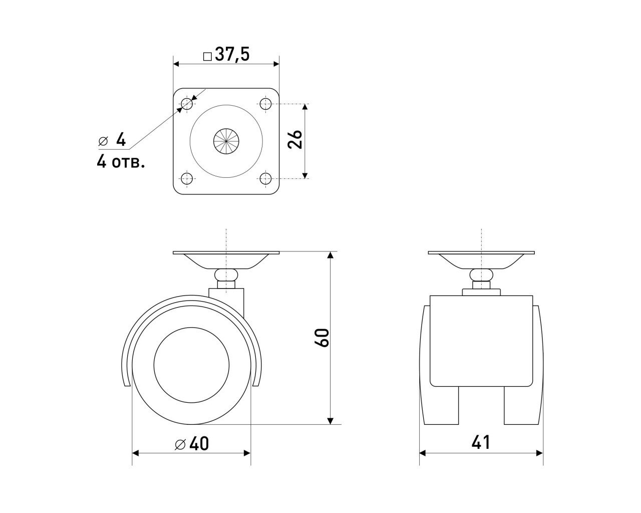 Soller Хедер Опора колесная с площадкой d40 резиновый ход 4670042058947