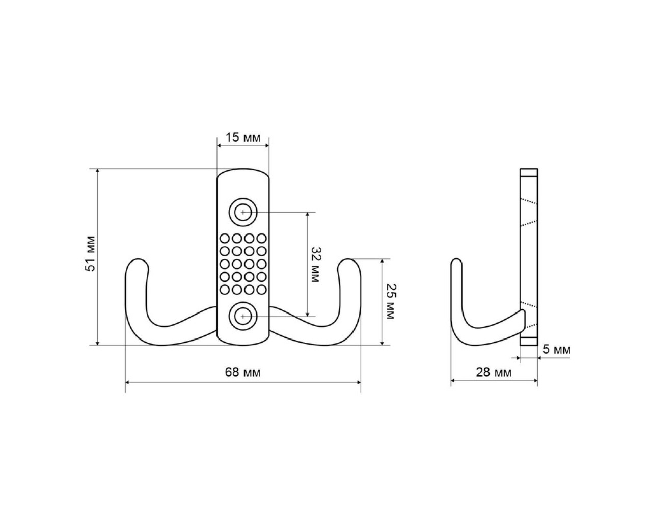 Крючок-вешалка двухрожковый Материал - алюминиевый сплав Крепеж в комплекте