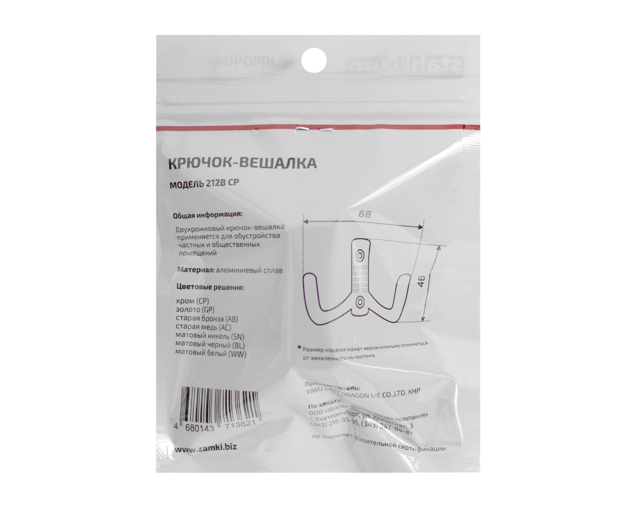StahlBurо Крючок-вешалка 212 В СР хром 4680143713621