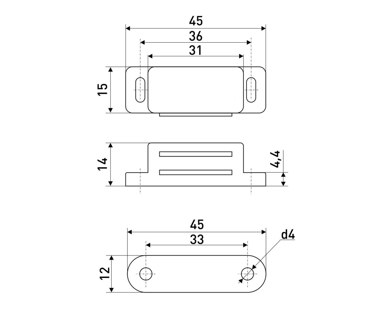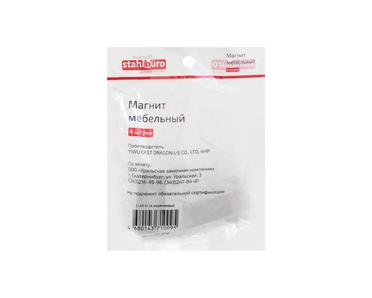 StahlBuro Магнит мебельный L-45 h-14 коричневый 4шт 4680143710095