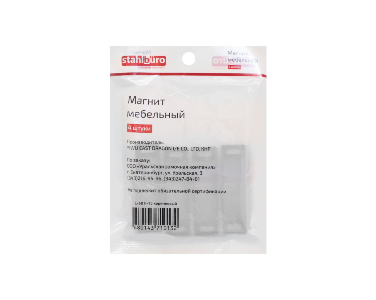 StahlBuro Магнит мебельный L-60 h-15 коричневый 4шт 4680143710132