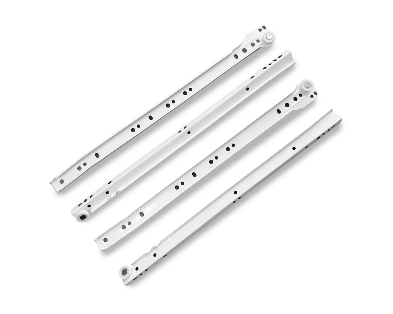 Роликовые направляющие предназначены для установки ящиков и выдвижных панелей с открытым монтажом. Два встроенных стопора и механизм фиксации предотвращают случайное выкатывание, обеспечивая надежную фиксацию в открытом состоянии, без использования амортизации. Установка осуществляется при помощи качественных саморезов, которые обеспечивают надежную фиксацию выдвижного элемента. Прочная стальная конструкция обеспечивает надежность. Пара направляющих способна выдерживать нагрузку до 30 кг. (в зависимости от монтажной длины). Механизм устанавливается легко и быстро, обеспечивая удобный монтаж.
