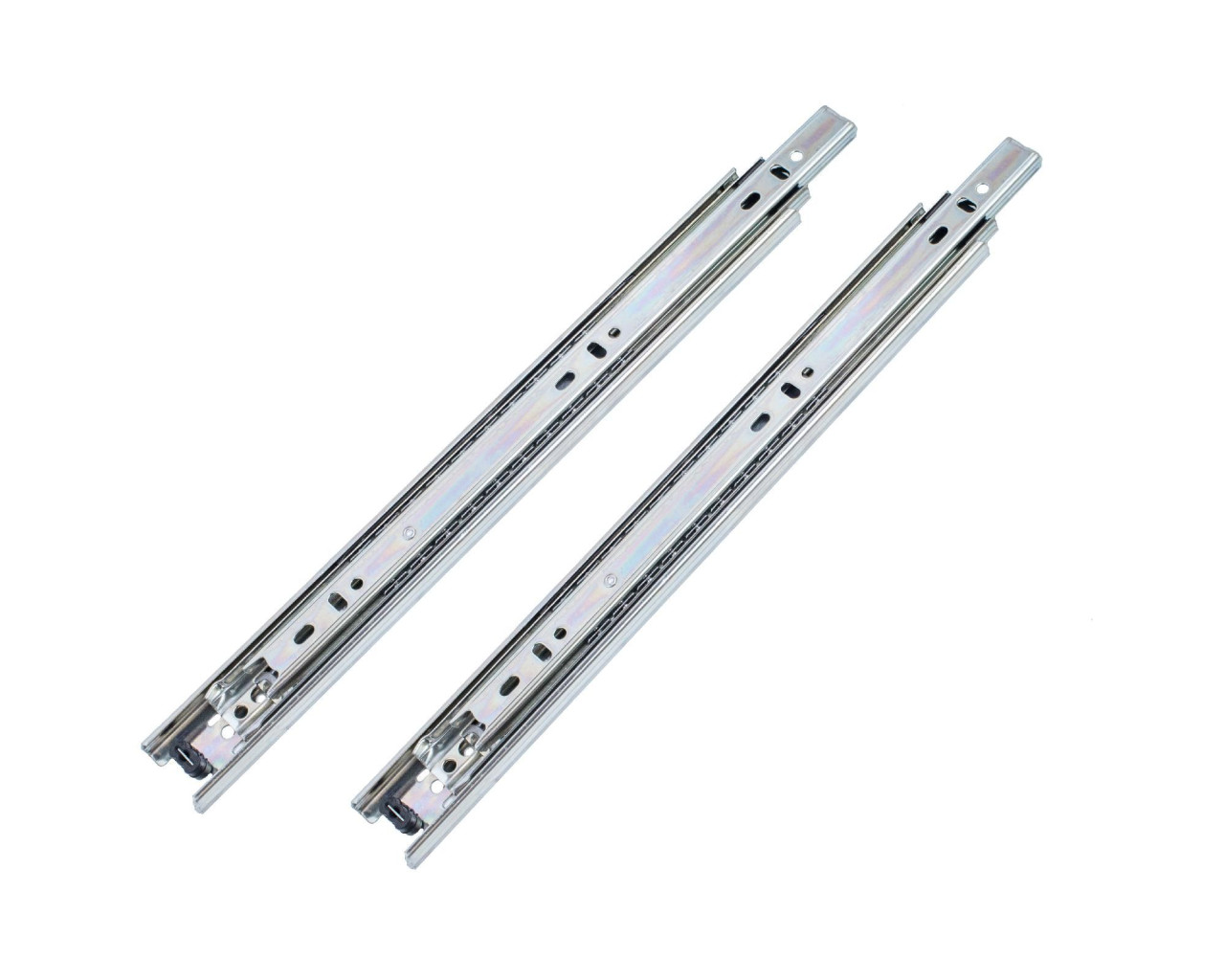 Шариковые направляющие полного выдвижения без амортизации соответствуют европейскому стандарту. Это незаменимый элемент мебельной фурнитуры, обеспечивающий комфорт в ежедневном пользовании. Эти направляющие обеспечивают стабильную и плавную работу ящиков, предоставляя уровень комфорта, сопоставимый с передовыми системами выдвижения. Они отличаются современными характеристиками, обеспечивают равномерный ход и проявляют выдающуюся надежность и долговечность. С их оптимальной грузоподъемностью до 30 кг (в зависимости от монтажной длины) они гарантируют бесперебойную работу на протяжении более 50 000 циклов открывания/закрывания. Комплект состоит из качественных направляющих и высококачественного крепежа к ним.