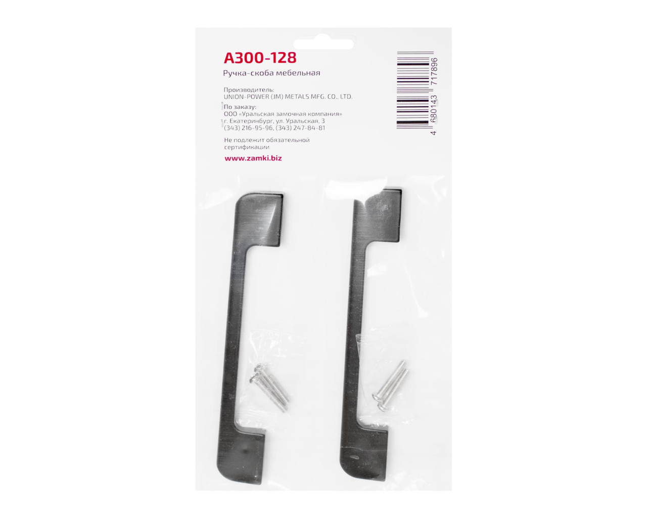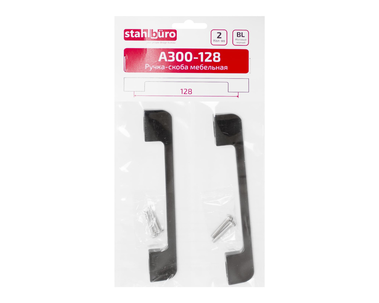 StahlBuro Ручка скоба меб A300-128 BL мат черный 2шт 4680143717896