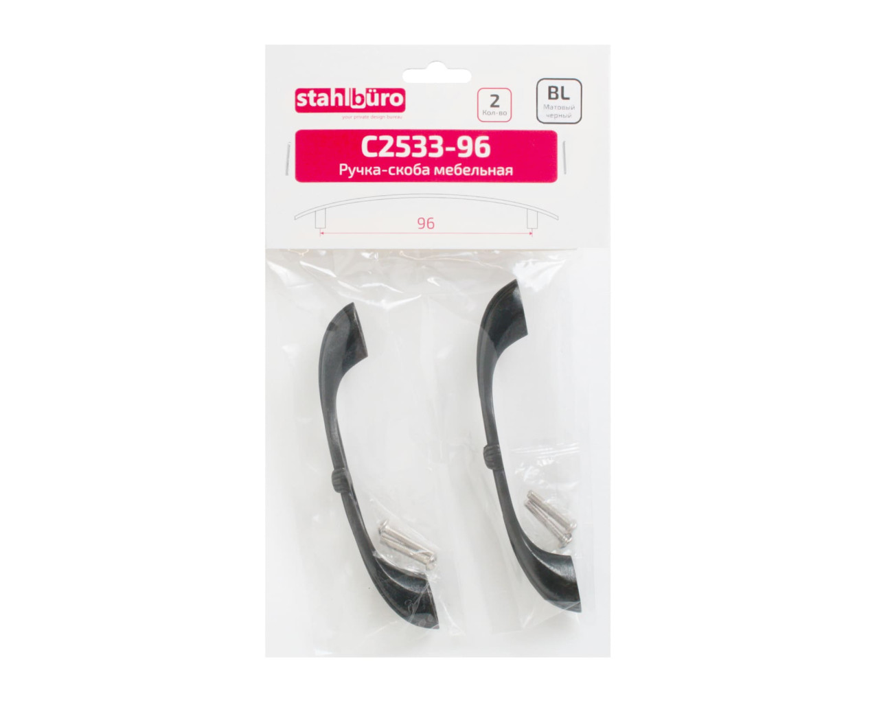StahlBuro Ручка скоба меб С 2533-96 BL мат черный 2шт 4680143722296