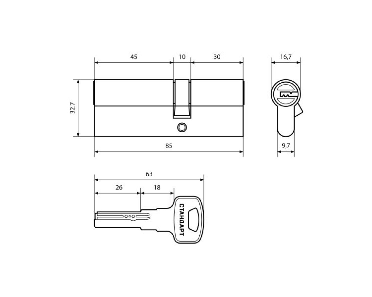 Стандарт Цилиндр. механизм F-01 85 (30*10*45) GP перфокл кл/кл 4660041983852
