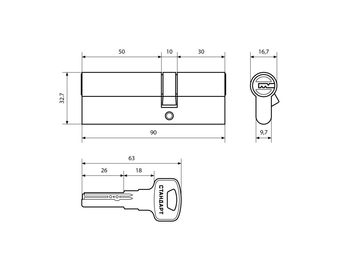 Стандарт Цилиндр. механизм F-01 90 (30*10*50) GP перфокл кл/кл 4660041983869