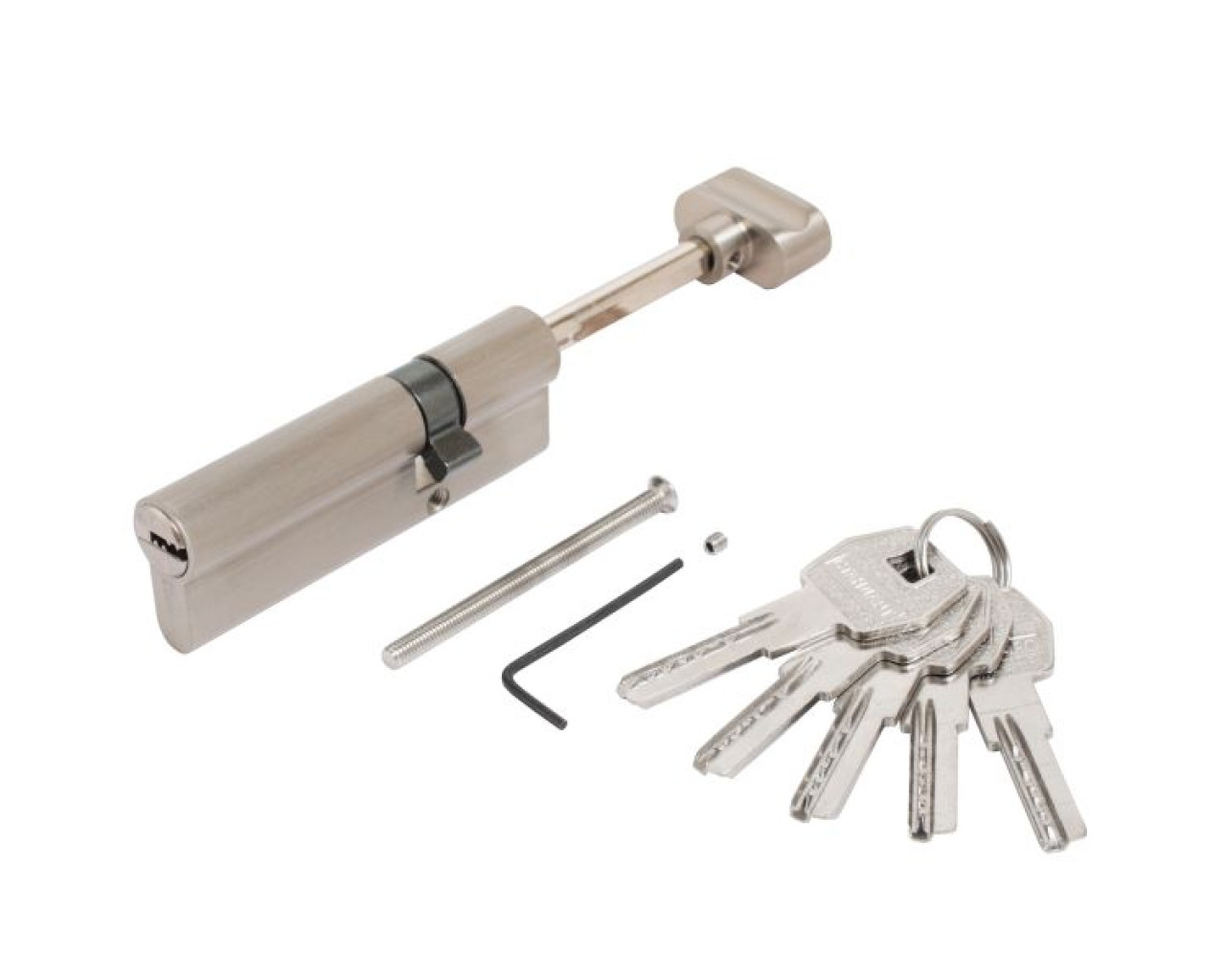 Механизм цилиндровый со штоком для врезных замков входных дверей. Перфоключ. Материал цилиндра: корпус - цинковый сплав, ротор - латунь. Выступающий на 30 градусов из плоскости механизма кулачок защищает цилиндр от выбивания из двери. Подходит для использования с броненакладками (длина шейки ключа - 15мм). Длина штока - 65 мм. ПРИ УСТАНОВКЕ НЕ ИСПОЛЬЗОВАТЬ ЭЛЕКТРО ИНСТРУМЕНТ!