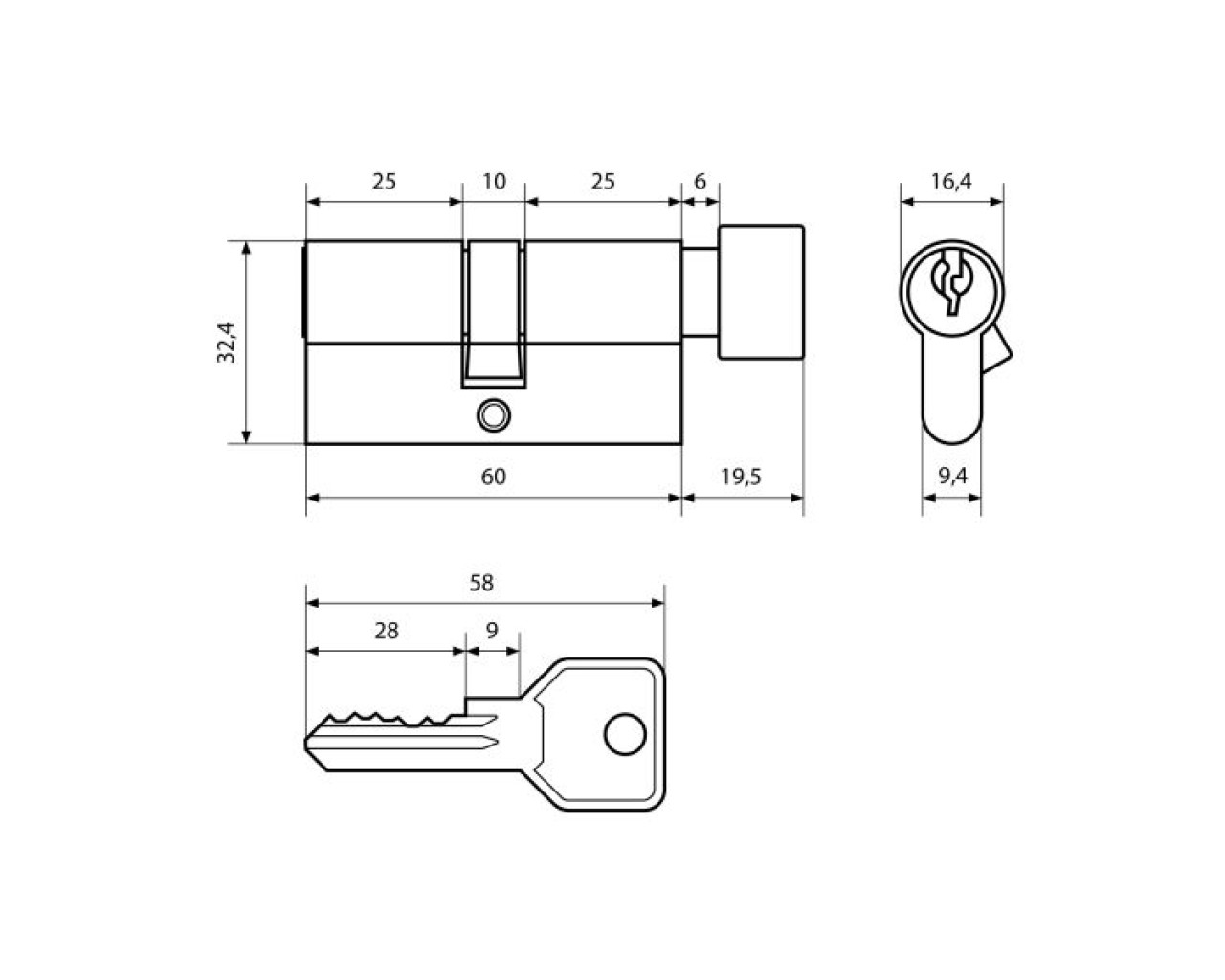 Механизм цилиндровый для врезных замков. Европрофиль. Английский ключ. Материал цилиндра - сталь,цинковый сплав. Ключ-вертушка. Длина механизма - 60мм. ПРИ УСТАНОВКЕ НЕ ИСПОЛЬЗОВАТЬ ЭЛЕКТРО ИНСТРУМЕНТ!