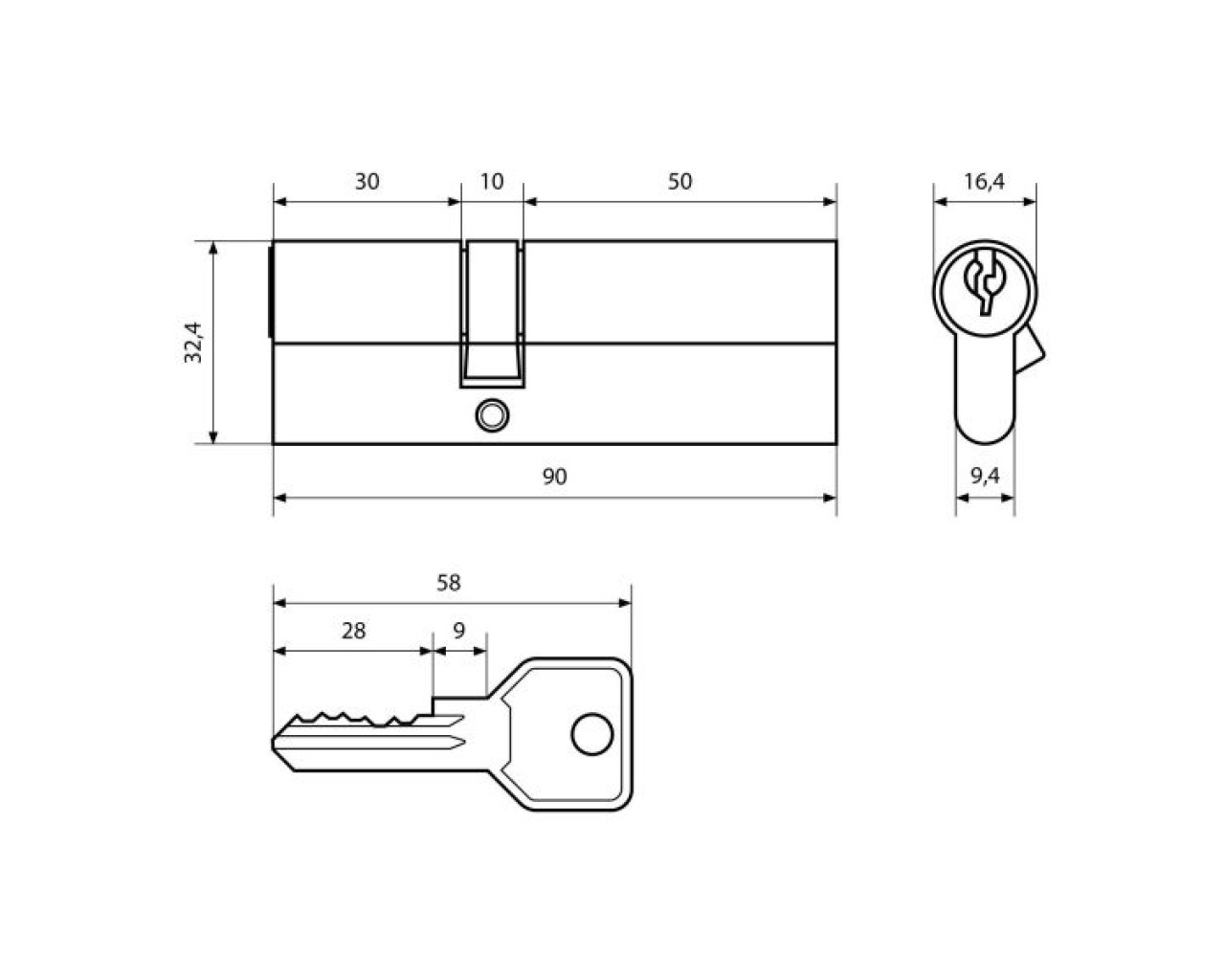 Механизм цилиндровый для врезных замков. Европрофиль. Английский ключ. Материал цилиндра - сталь, цинковый сплав. Ключ-ключ. Выступающий на 30 градусов из плоскости механизма кулачок защищает цилиндр от выбивания из двери. Длина механизма - 90(30x10x50)мм. ПРИ УСТАНОВКЕ НЕ ИСПОЛЬЗОВАТЬ ЭЛЕКТРО ИНСТРУМЕНТ!