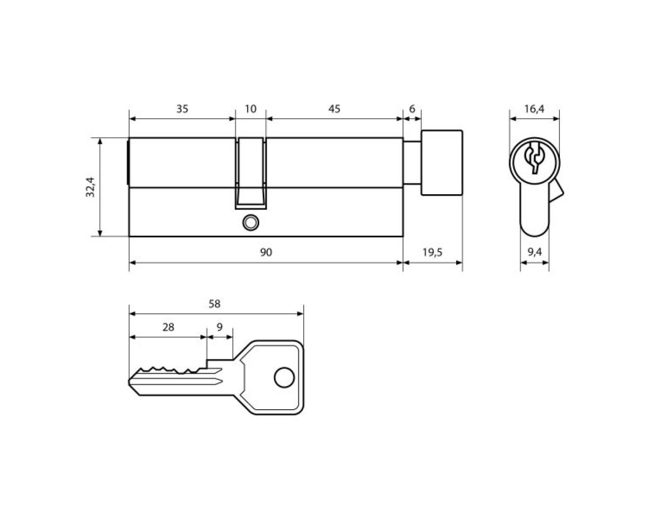 Стандарт Цилиндр. механизм ZI90B-5K (35*10*45В) СР англ ключ/верт хром 4660041983838
